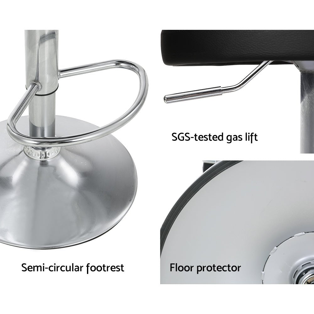 For a gorgeous contemporary addition to your modern home, the Nuvo Bar Stool is what you need for your kitchen island, bar or dining area. Crafted with care and finesse, the white stool effortlessly blends with your existing décor, providing style and comfort. Sink into the luxuriously thick high-resistance foam enveloped in premium white PU leather that covers the seat and backrest. With a 360-degree swivel, you can effortlessly glide from one conversation to another. Adjust the height of the chair for the perfect fit at any counter or bar. The sturdy chrome base with a semi-circular footrest provides the ultimate security, and the base is fitted with an anti-slip floor protector to keep the chair in one place and prevent scratches to your floors. Easy to clean and even easier to install, you can elevate your space right away with a set of Nuvo Bar Stools from