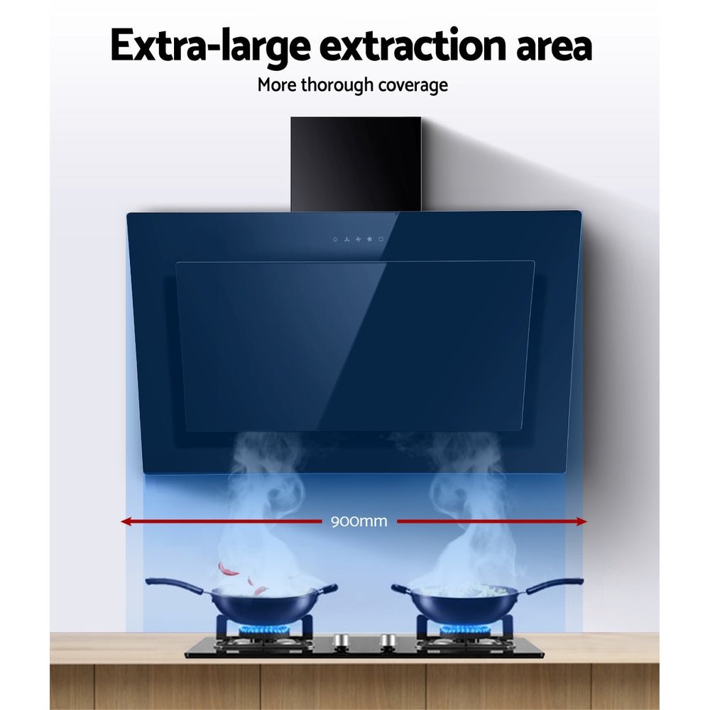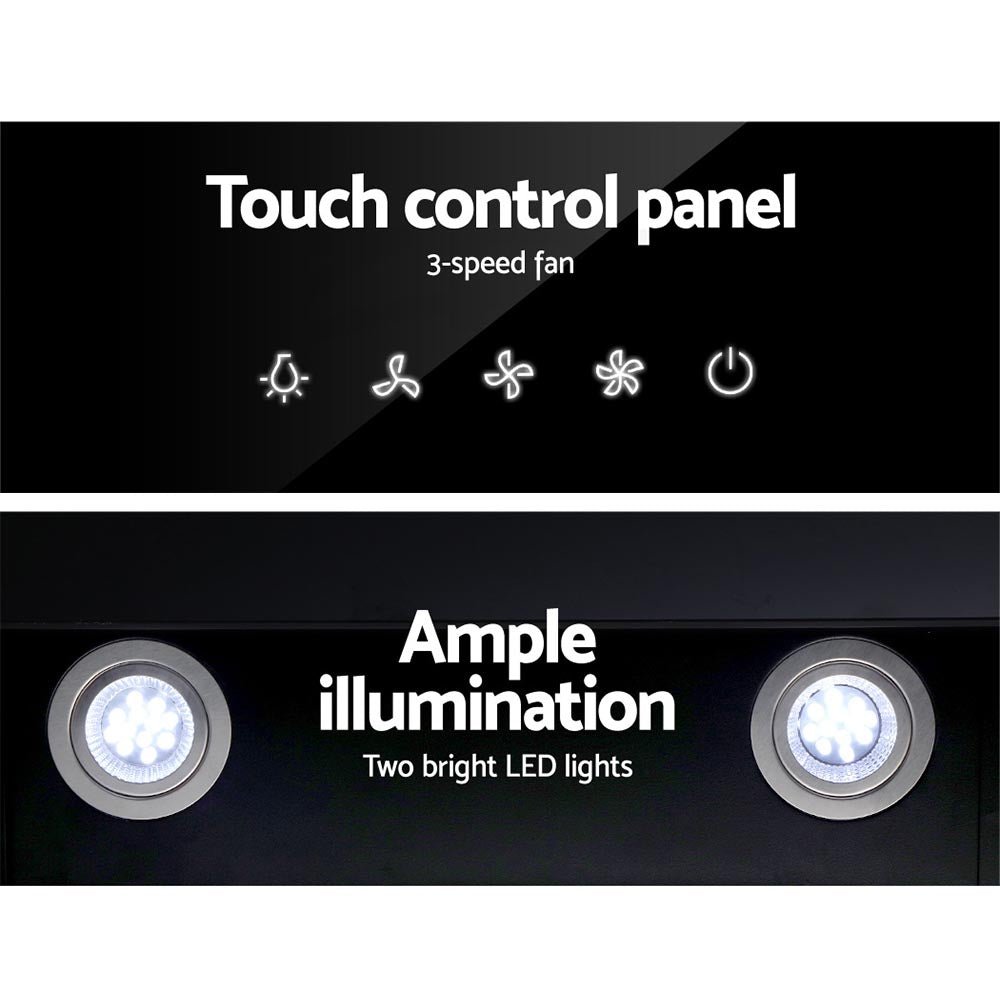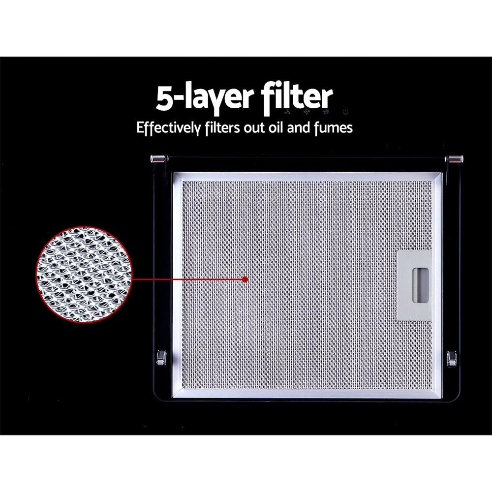 The Devanti Angled Range Hood is anything but mundane. With its unique side-draft wall-mounted design, the 30 degrees-inclined range hood helps to solve a perennial problem with traditional range hoods. No more getting your head in the way of your cooking and a better view of your cooking too. And you can also say goodbye to smoky fumes and unwelcomed cooking odours too. With its high-performance motor, the black tempered glass finish range hood provides a steady upflow and filtered extraction of fumes and oil to keep your cooktop area clean and fresh after every use. With its 3-speed touch controls, the extraction speed can be adjusted to suit the circumstances. Other features include two non-stick 5-layer aluminium filters that are removable and replaceable and two bright LED lamps to facilitate your Not least, it is also totally energy-efficient with plenty of cost savings for you.