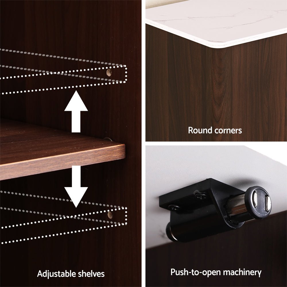 The cabinet's sleek design and marble effect colour scheme make it an elegant addition to any room décor, from the living room to the bedroom, office, or hallway.