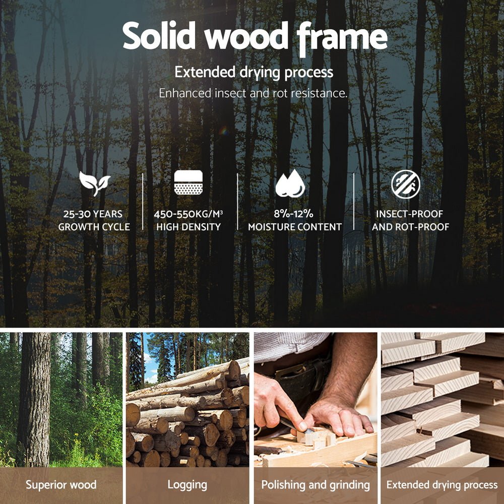 This Artiss Double Bed Frame combines a gas lift storage base and velvet headboard. The base features faux linen upholstery, high-density foam padding, and reinforced wood construction with 300kg capacity. The art deco inspired headboard includes soft velvet fabric, foam padding, and breathable backing. Fits standard Double mattresses (190x137cm). Easy assembly required. Grey finish complements modern bedrooms.