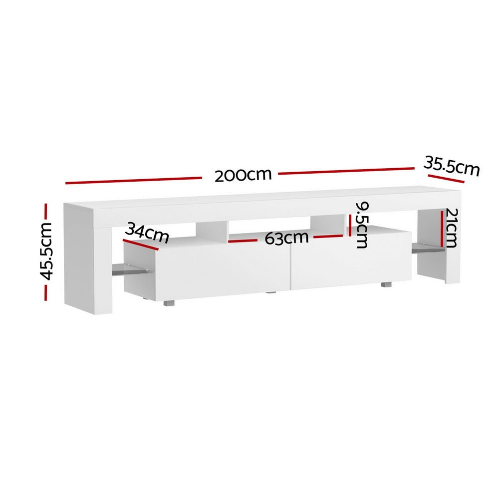 1 x Large 200CM LED Entertainment Unit in White Gloss (RGB LED)