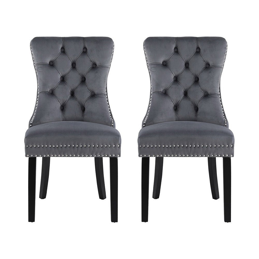 Elevate your dining space with this set of 2 Dining Chairs, designed to bring timeless charm to your home. Upholstered in your choice of PU leather or plush velvet, the chairs feature a button-tufted backrest and rivet edging for a sophisticated look. Crafted with a cushioned backrest filled with high-resilience foam, these chairs provide exceptional comfort during meals and gatherings. The rubberwood legs ensure reliable support, while anti-slip feet protect your floors. Perfectly blending style and practicality, these dining chairs make a stunning addition to any dining room.