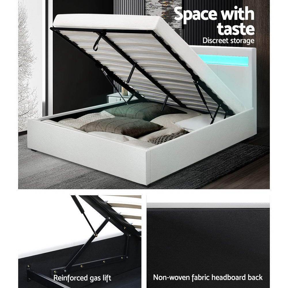 Strong steel frame with high grade steel centre rails, heavy-duty bars and arched slat base. Large and comfortable headboard. But with one easy gas lift of the bed base, the bed frame becomes an instant storage area with acres of space for your bedding essentials.