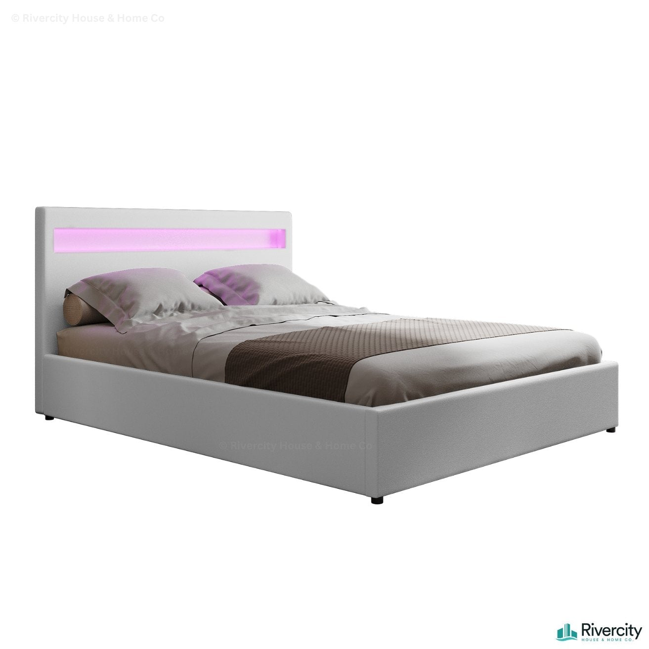 It comes with built-in LED lighting that can be customised into 16 different colours and 4 flashing modes to suit your preference. Not only will the illuminated bed frame create a beautiful ambience, it will also save you from buying extra bedside lamps or nightlights.