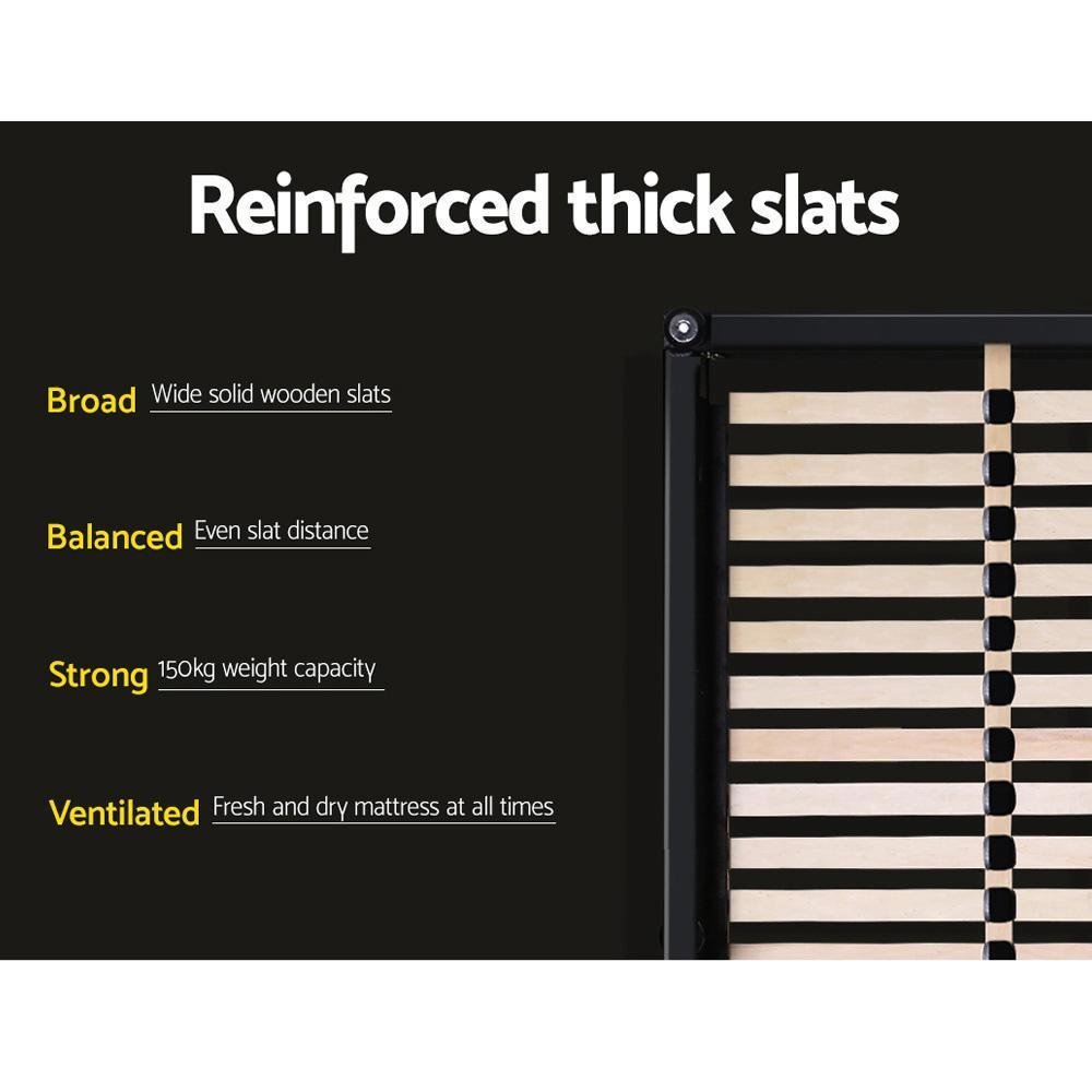 You will surely appreciate the high-density foam that fills the bedhead and every other inch of the bed frame for a well-padded look and feel. Within the frame, a highly flexible wooden arched slat base allows the bed to flex properly so that a person who lies on the bed can move around without unduly disturbing the other.