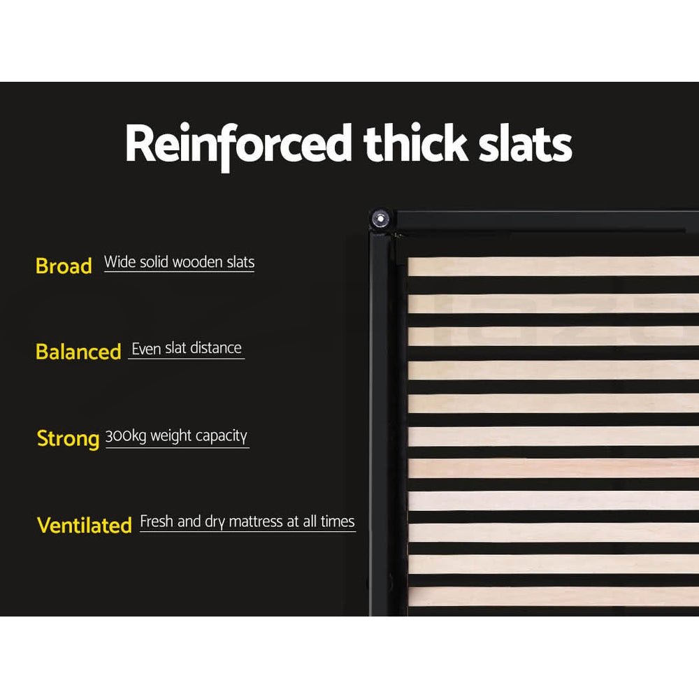 Our Toki Gas-Lift Bed Frame combines exquisite style with great storage practicality. The frame is built with reinforced steel construction while the wooden arched slat frame helps to distribute weight evenly across the framework.