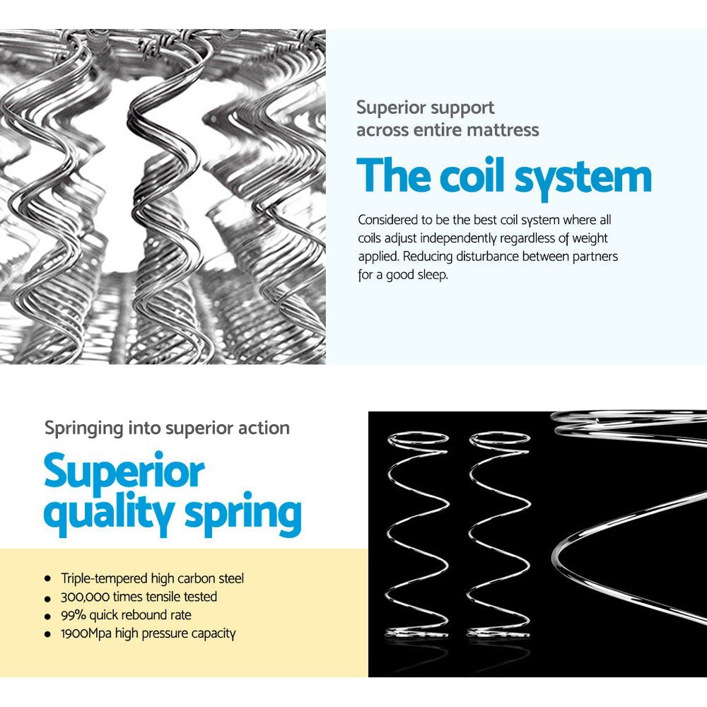 Outside, its pillow top and soft quilting top layer is an oasis of luxurious comfort. Lush and delightful, this top layer is guaranteed to make you feel good all over. Inside, the 5-zone Bonnell spring offers targetted relief from head to toe while distributing your weight evenly throughout the mattress. The independent coil system also ensures undisturbed sleep from any movement from your partner.