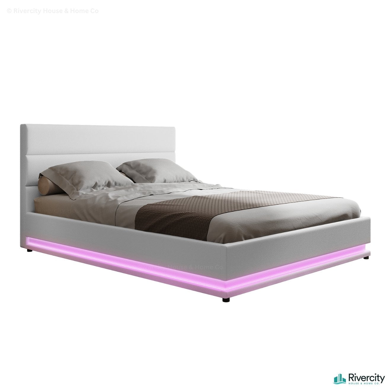 Queen Premium Package | Henley LED Storage Queen Bed Frame White, Luna Series Euro Top Mattress (Medium Firm) & Bamboo Mattress Topper!