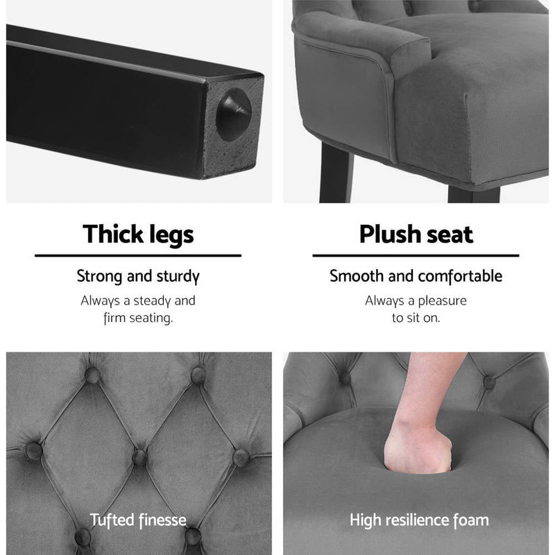 The tufted button design of the back rest, and the iconic curved back legs and turned front legs all add to the overall charisma of this classic chair.