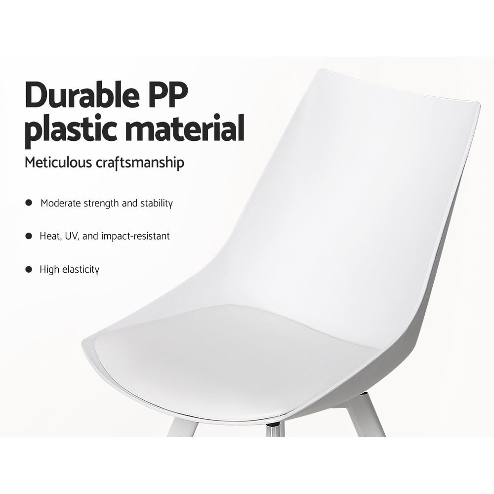 Not just for your dining room, these dining chairs are sure to make a statement in your study room, living room, and dressing room. Their versatility and ultra-modern design make them stand out. Incredibly stylish and sophisticated, our Lyla dining chairs feature durable PP plastic construction that ensures lasting quality and ultimate durability. It comes with solid steel legs with an anti-slip feet pad for ultimate stability and keeping your floors scratch-free.