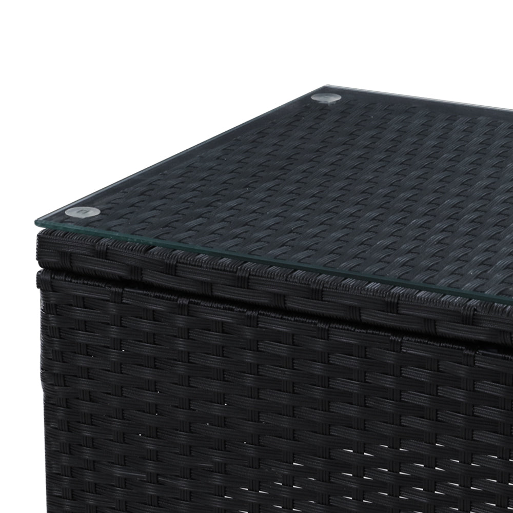 Enjoy the pleasant outdoors or have a nice chat with friends over a cuppa with our 3-pc Outdoor Set. With its chic and trendy profile, the set comes with two chairs and a matching table. Finished in meticulously weaved UV-resistant and weatherproof PE wicker with a strong and sturdy powder-coated steel frame construction for both chairs and table, this outdoor set is designed to please as well as stand up to the weather elements. The chairs have an elegant contoured design with spacious seating and 5cm thick high-density foam cushions to ensure comfort and style are always in place. If you spill your drink, the 5mm thick tempered glass tabletop and removable seat cushion covers make cleaning up hassle-free. With so much going for it, the outdoor set certainly deserves its coveted space in your lovely backyard, deck or patio. Or even indoors for a unique presence.