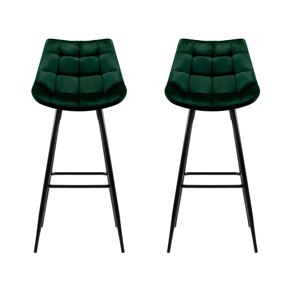 With its velvety and steely overtones, these Bar Stools are designed to look and feel good with every sitting. Meticulously crafted with heavy-duty metal with chic matt black finish, the bar stool features a tufted rich green velvet fabric integrated seat and backrest that feels comfortably smooth and looks classy. The contoured backrest also provides support while the anti-slip rubber feet keep the bar stool firm and steady when in use.