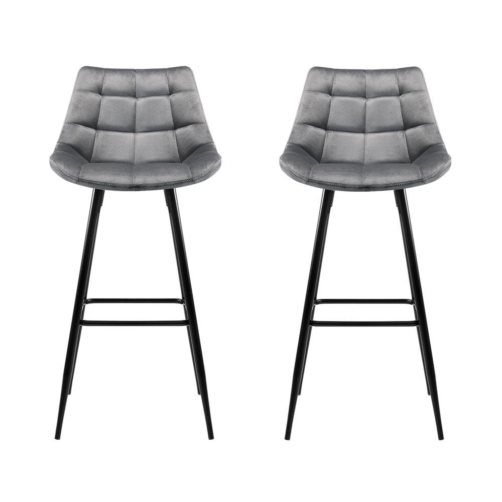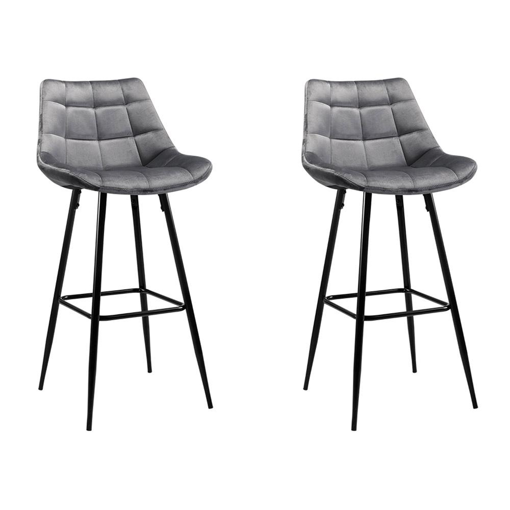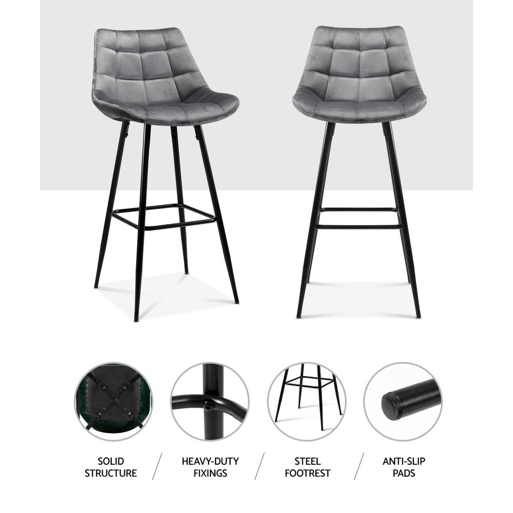 With its velvety and steely overtones, these Bar Stools are designed to look and feel good with every sitting. Meticulously crafted with heavy-duty metal with chic matt black finish, the bar stool features a tufted rich grey velvet fabric integrated seat and backrest that feels comfortably smooth and looks classy. The contoured backrest also provides support while the anti-slip rubber feet keep the bar stool firm and steady when in use.