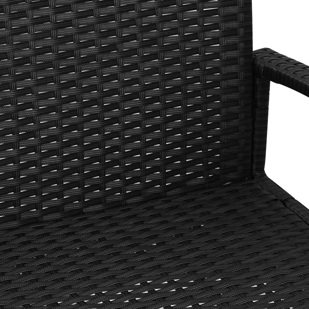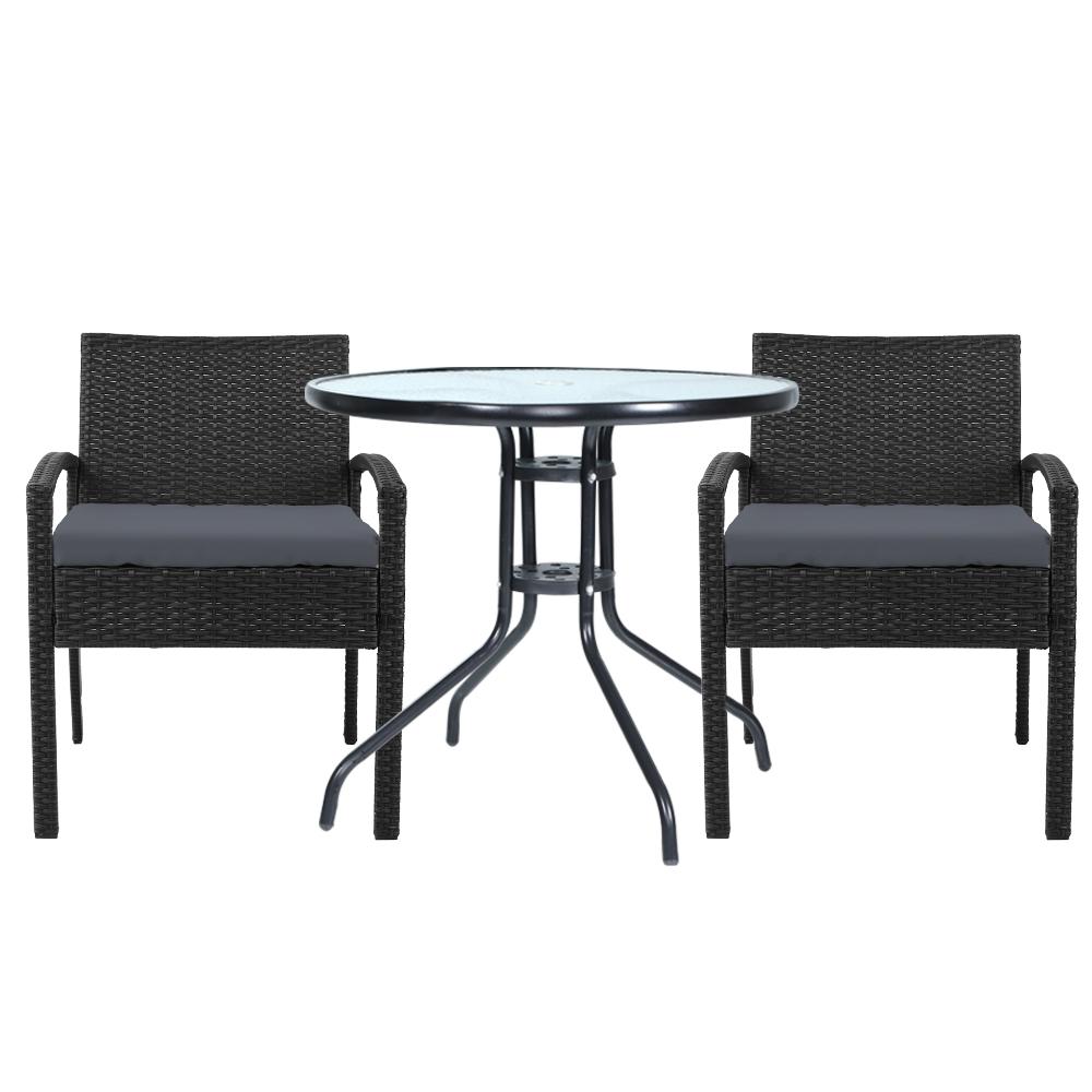 With its chic and trendy profile, the set comes with a glass-top table and two wicker chairs. The elegant table is stunning in looks and equally as functional. The thick steel frame makes it durable and the 5mm thick tempered ripple glass does not only look stylish, it is easy to clean. Plus, there is a built-in hole for your parasol for you to relax outdoors for as long as you like during the hot summers without the fear of getting sunburnt.