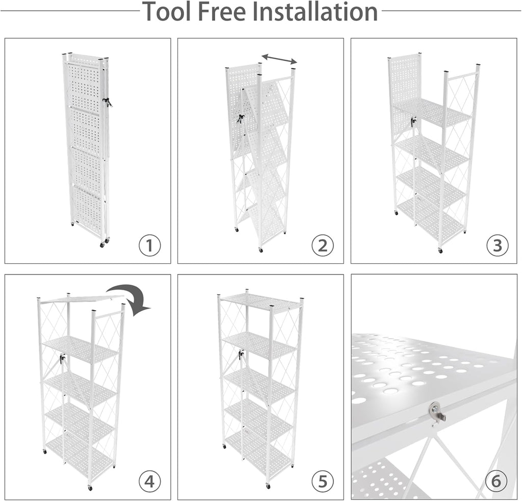 CARLA HOME 5-Tier Foldable Storage Shelf with Wheels for Kitchen, Garage, Pantry or Basement (White)
