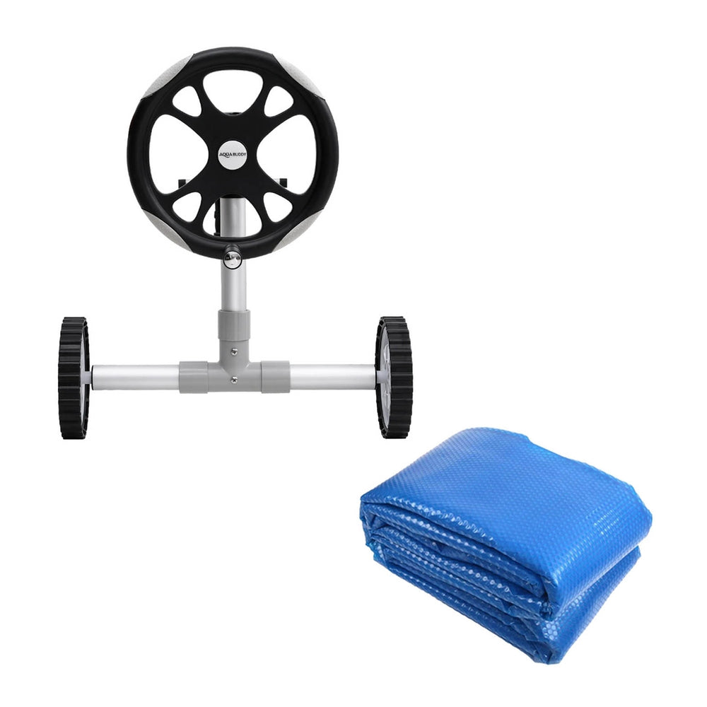Keep your pool clean from debris and warm from the power of the sun with Aquabuddy's Aluminium Pool Roller and 11m x 6.2m Pool Cover. Made of sturdy aluminium construction with full adjustability, this pool roller is suitable for pools with a width between 3.1m-6.55m. It is equipped with premium anodized aluminium alloy telescopic poles, plastic wheels for maximum portability, and a low friction crank wheel to easily roll up your pool cover and get right in the water. The solar pool cover is made from premium low-density 400-micron polyethylene, which makes it extremely durable. The blue top and silver underside allow the sun's rays to penetrate the pool, increasing the temperature and significantly reducing water evaporation. Finally, the cover keeps the pool water clean all year round, reducing the time spent maintaining the water, pumps and filters. Get the best of natural resources and save money on chemicals and water; get yourself an Aquabuddy Pool Roller and Cover set today!