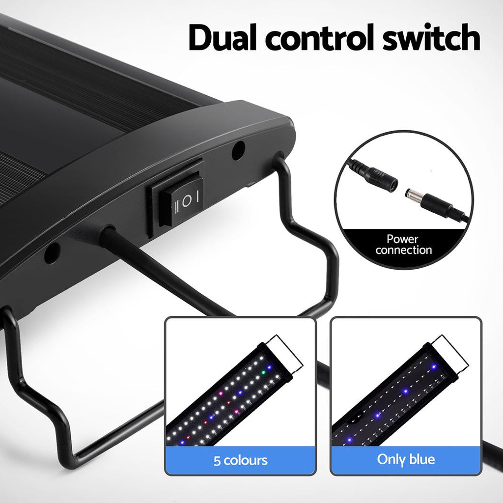 Introducing our i.Pet aquarium LED light, designed to enhance tank vibrancy with 5-colour LEDs. The adjustable bracket makes it suitable for various tank sizes, while utilizing efficient, cost-saving 2835 LED technology. This light is suitable for both freshwater and saltwater tanks.