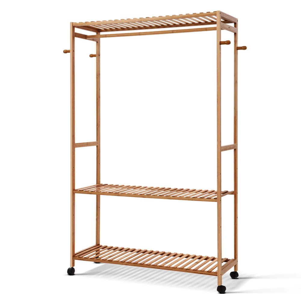 Exuding lots of natural class and style, the polished and burr-free frame is simply meticulous in finish and makes for a great furniture piece for any part of your home. Use it as a hallway hanger and the clothes rack is equally at home. And as a shop display, it makes for a stylish visual merchandising piece too. Better still, the rack can handle up to 10kg in weight with each tier capable of holding 10kg and each hook 2.5kg. In other words, the bamboo clothes rack is as strong and durable as it stands. The clothes rack also comes with four hanging hooks for more handy use, an adjustable middle tier and four omni-directional castor wheels with two that are lockable.