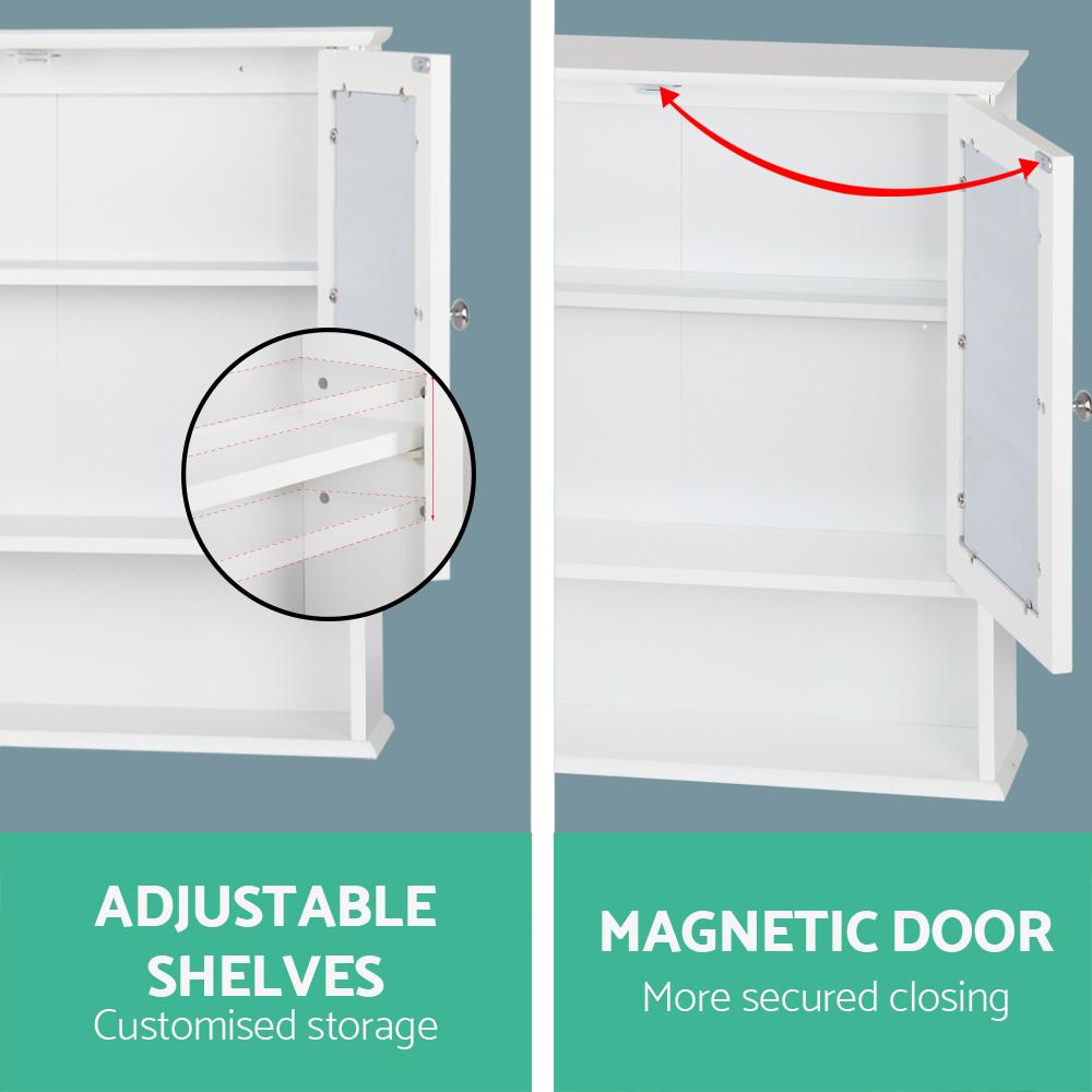 Bathroom Tallboy Storage Cabinet with Mirror - White