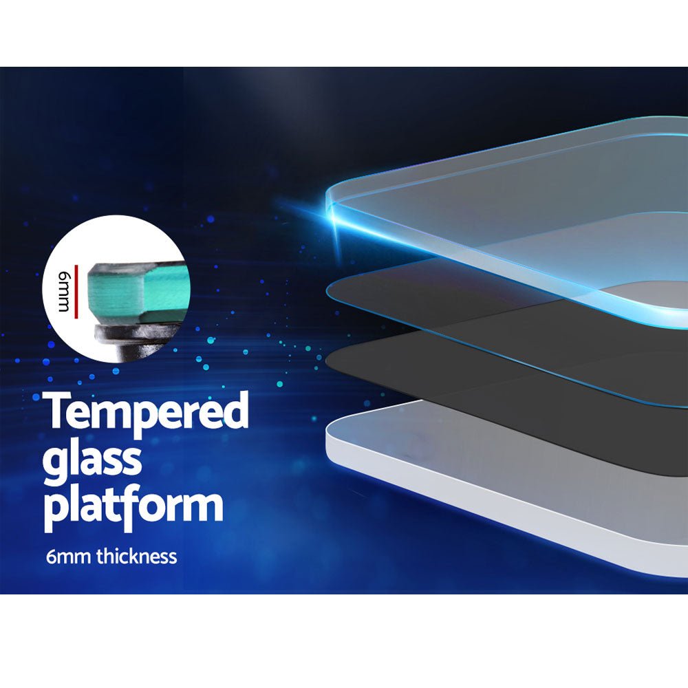 Kicking your fitness goals has just become easier with our Everfit Scale. Equipped with four high-precision sensors, the scale measures 23 unique parameters including weight, BMI, body fat ratio, lean mass, water percentage, muscle mass, bone mass and more, so you can see a complete picture of your health. The scale shows measurements in three units (kg, lb and st-lb) with a weight capacity of 180kg, 400lbs or 28st. The scale has a durable 6mm thick tempered glass platform, and the entire super slim ensemble is only 20mm thick for easy storage and maintenance. To use the scale, just download the Scale Up app onto any iOS or Android phone, open the app and pair the scale to your phone using Bluetooth. The scale will display the results on the large LCD display after each weigh-in and you can store data for up to 99 users. With other great features such as baby scale mode, low power/overload indication and auto on/off, our scale makes keeping track of your health fast and easy.