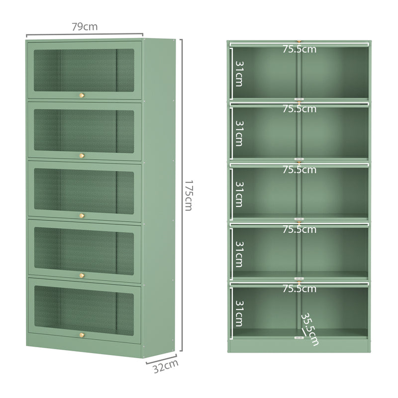 The 5-tier cabinet is made from high-quality cold-rolled steel and features ample storage space for all of your household essentials. The doors feature a stylish mesh so you can see exactly what's inside and maintain proper airflow.