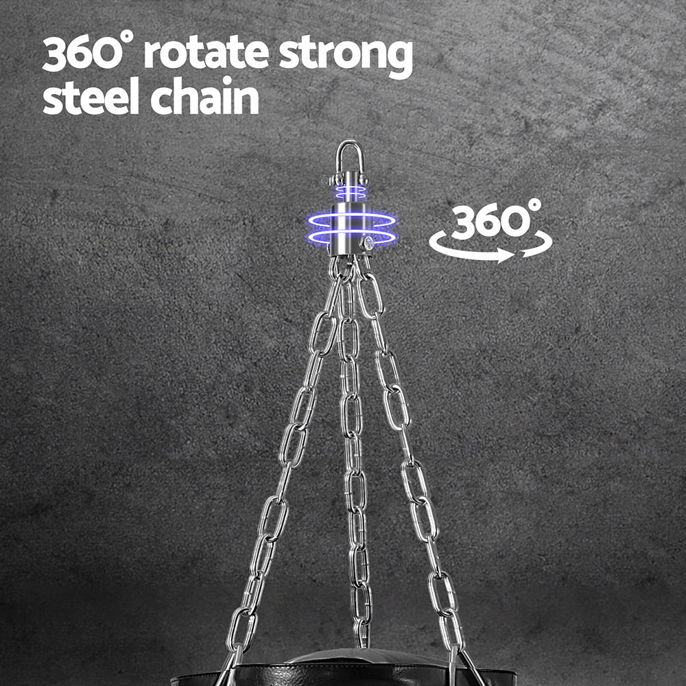 Practice boxing from the comfort of home with the Everfit Boxing Bag. This hollow bag comes with multiple layers of sturdy material, a reinforced steel chain and a movable hanging buckle for easy installation, making it convenient to hang the bag wherever you desire. With a strong zipper closure, replacing the filling of the bag is a breeze. You can fill it with sand, old useless cloth rags, a sponge core, or any material of your choice for a customized boxing experience. Hang it on the gymnastic ring, ceiling frame, porch swing, garage, or any suitable location to enjoy a challenging workout session. This versatile bag not only serves as a punching game to relieve daily stress and pressure but also helps you stay fit and active throughout the week. Enjoy boxing at home with the Everfit Boxing Bag.