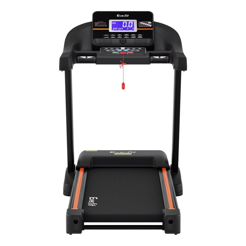 Introducing our premium Everfit treadmill with a robust composite running board and strong powder-coated steel frame. Featuring a user-friendly control panel, clear digital LCD display, high-performance motor, and durable running belt. Enjoy automatic incline, shock absorption, heart rate monitoring, and Bluetooth connectivity.