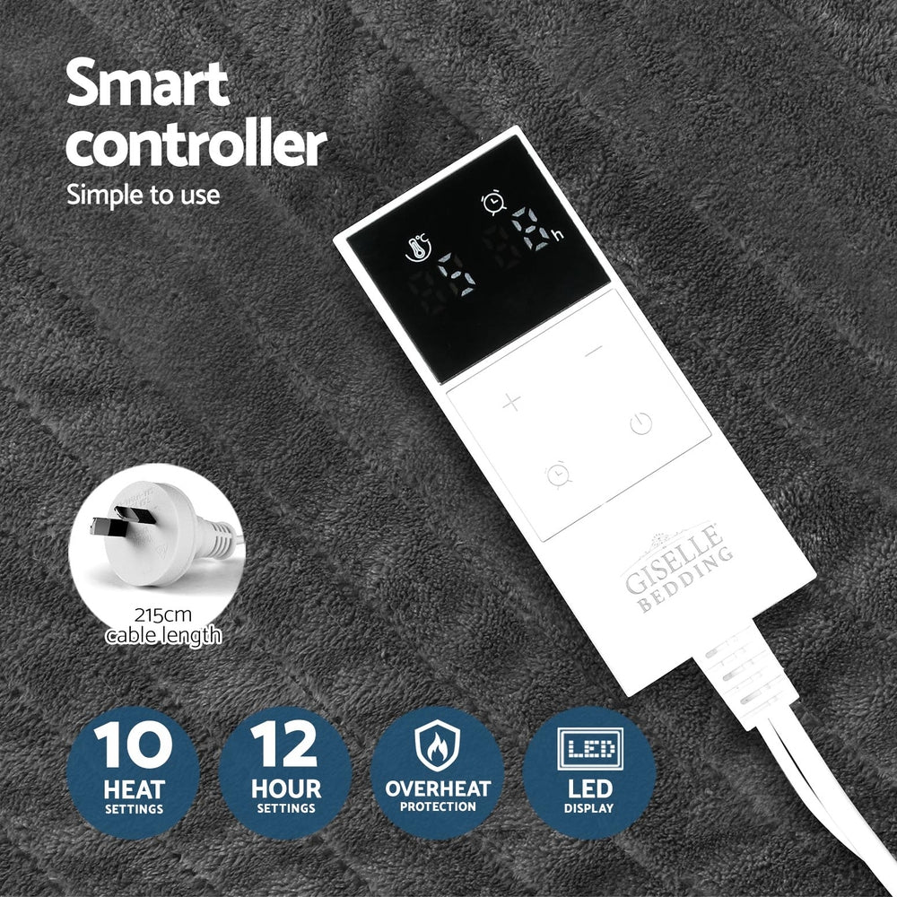 Get that warm and cosy feeling every day with a Giselle Bedding Electric Throw Rug. The double-sided throw rug is made from premium flannel and sherpa fabric, our electric throw rug is just the thing to help you cut down on costly heating bills while still enjoying the heat up-close. The throw rug has all the features of our electric blankets with up to 9 temperature settings, a 9-hour timer, overheat protection, automatic shut-off and a detachable controller with LED display so you can always be in control of the temperature. It is anti-dust mite and bacteria and is machine washable for a clean blanket time and time again. Keep your bedroom or living room cosy and comfortable with a warm and huggable Giselle Bedding Electric Throw Rug.