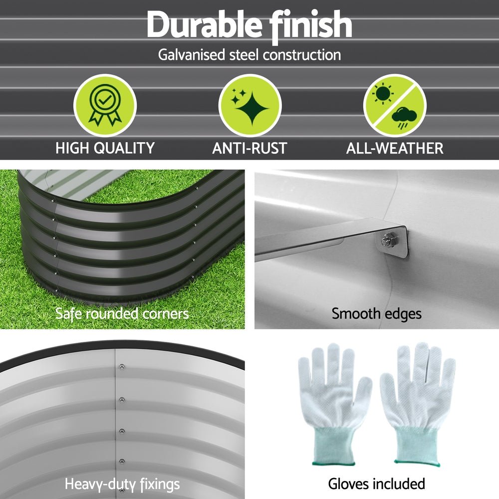 Plan to grow your own greens? Carrots, radishes, lettuce, spinach, onions, tomatoes or strawberries, our Gavlanised Raised Garden Bed can help to grow them all easily. Made of quality SGCC steel with epoxy powder coating, our galvanised raised garden bed has a low reaction against chemicals used for planting and is totally rustproof. Its 0.5mm thickness means extra stability and edges ensure that it is safe to use too. The garden bed is easy to put together and durable in every weather condition. Set it up, add in the soil, then the seeds or saplings and you are good to have a great fruit and vegetable patch of your own. Better still, get a few sets and you'll be a happy home farmer with a rich harvest in no time. Get yours today.