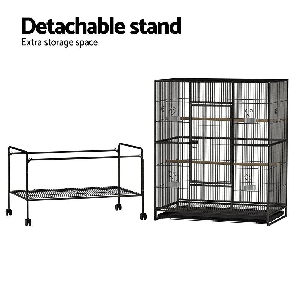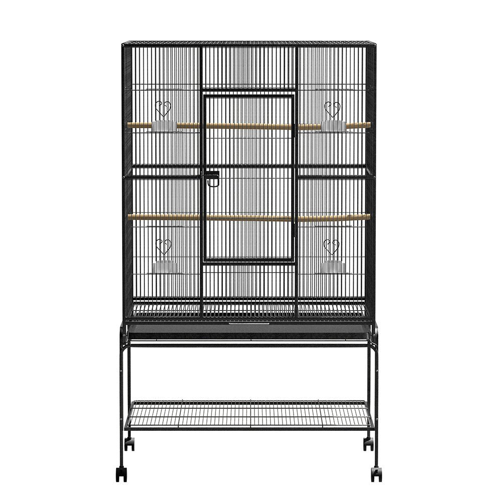 With roomy accommodation for birds of various sizes, the i.Pet Bird Cage is definitely the most comfortable roost for your fine-feathered friends. Made of high quality and durable wrought iron with a non-toxic powder-coated finish, the cage comes with a large access door with secured locks, two small food access windows, two timber perches, four food and water bowls and a removable slide-out tray for easy clean up. Better still, the palatial cage is set on a sturdy stand that features a bottom shelf for extra storage space and strong legs with castor wheels attached for easy mobility.