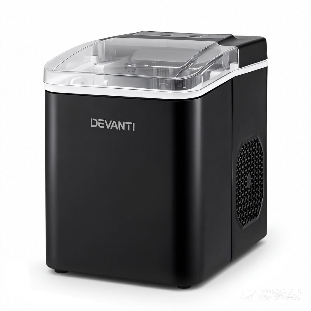 Enjoy instant ice anytime! The Devanti Portable Ice Maker produces 9 bullet-shaped cubes in just 6-7 minutes, up to 12kg daily. With self-cleaning, smart alarms, and quiet operation, this compact black machine fits perfectly in your kitchen or office. Includes scoop and basket - just plug in and enjoy chilled drinks all day!