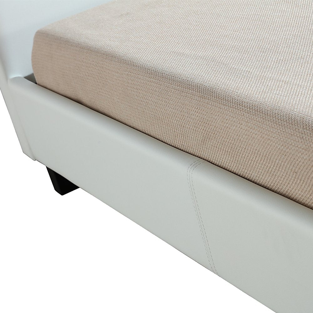 This bed from the expert craftspeople at Palermo measures 115 cm wide by 206 cm long, with a headboard that measures 88 cm tall (10cm leg & 78cm headboard) from top to bottom. It fits a king single mattress measuring 106 x 203 cm. The frame and headboard feature a durable PU Leather covering that's easy to clean and that will look great for many years to come. The headboard is padded for comfort while sitting up and reading or watching TV. An attractive stitched-together look and clean, simple lines make this bed frame a perfect complement to the modern bedroom. And the white colour adds visual appeal without being ostentatious.