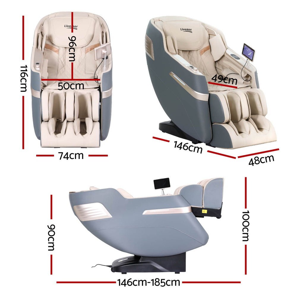 Beyond its massage capabilities, the Livermor chair includes several features to enhance your relaxation. Heated therapy for the waist and calf areas provides soothing warmth to help loosen tight muscles. The integrated 3D Bluetooth speakers allow you to enjoy your favorite music or podcasts while you unwind. Controlling the chair is simple and convenient, with a 7-inch LCD touch screen. To give you peace of mind, the chair comes with a 3-year warranty. Whether you're looking to relieve stress, soothe sore muscles, or simply enjoy some quiet time, the Livermor Electrical Massage Chair offers a reliable and comfortable solution.