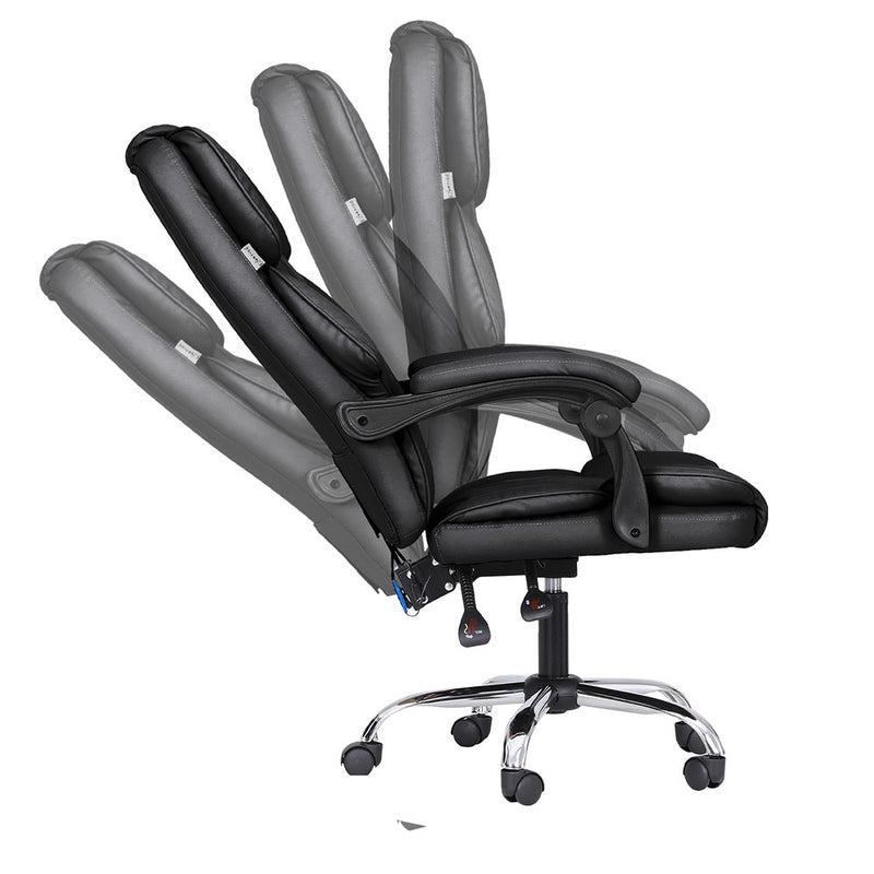 Our massage office chair offers an unparalleled level of comfort and relaxation, thanks to its high back design, high-quality PU, PVC, and fabric upholstery, cushioned seat and backrest, and padded armrests. It features five different massage modes and eight vibration massage points targeting the upper back, lower back, hips, and thighs. The chair is adjustable in height, reclines from 90 to 135 degrees, and includes timer settings. The swiveling 360 degrees, premium dual-wheel casters, and chrome base ensure maximum mobility and durability. Suitable for professionals seeking an ergonomically designed chair.