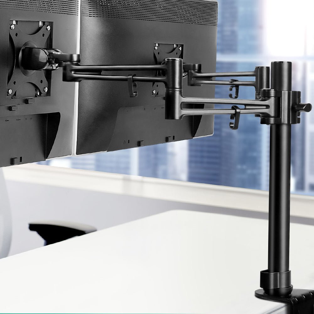 All the necessary mounting hardware and an assembly manual are included in the package for a hassle-free set up. So up the cool factor with our Dual Monitor Arm Stand on your desk. It'll certainly help you to view your tasks in a better light.