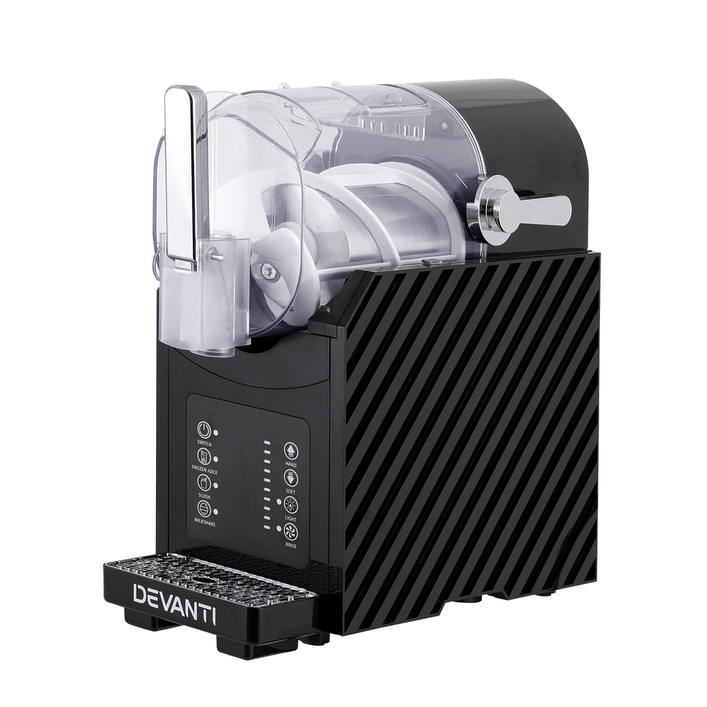 The Devanti Slushie Machine uses a built-in compressor to freeze and churn drinks from liquid to slush in one simple process. That means you can decide on the spot, pour it in, press start, and have a proper frozen drink ready in around 20 to 30 minutes.