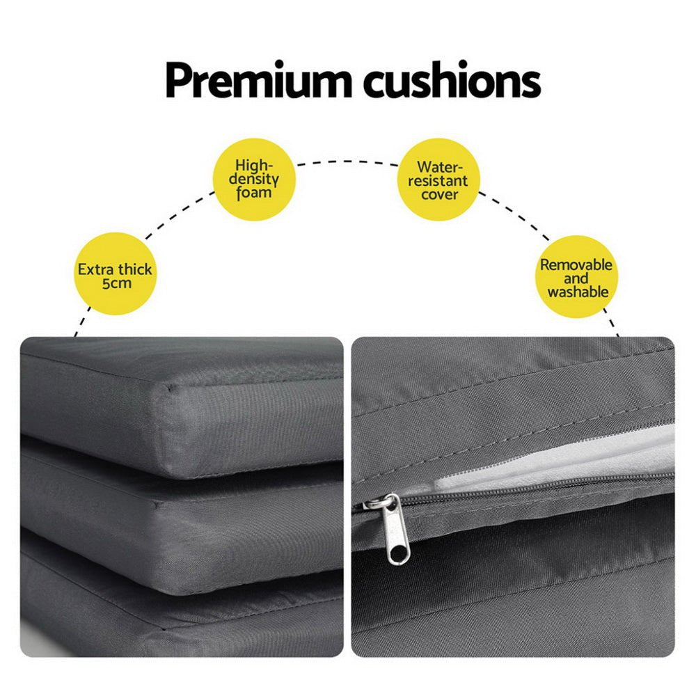 With summer fast approaching, you can once again join the sunshine with the 5-piece Outdoor Dining Set. Made from a powder-coated metal frame, the set is designed for outdoor or indoor use in a wide range of weather conditions. The table and chairs are designed to comfortably seat four people across four single chairs, or the table can be extended to fit up to six (extra chairs not included). The stable structure features fixed safety screws, giving each chair a 150kg weight capacity and a table weight capacity of 50kg. The seats are classically designed and completely comfortable with an inclined backrest, comfortable handrails, and 5cm thick foam cushions. The cushions feature removable and washable covers for easy cleaning. The table and chairs feature a slatted surface for easy drainage during wet weather. With easy and hassle-free assembly, the 5-piece Outdoor Dining Set is the perfect addition to any backyard, patio or even sitting room.