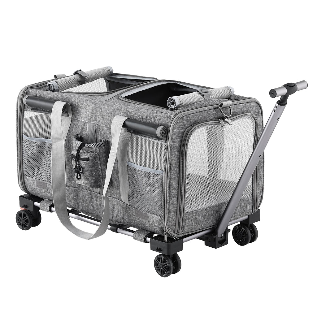 For the pet owner who needs a reliable and easy way to transport their larger furry mate, the i.Pet Premium Pet Trolley Carrier is a game-changer. Combining the durability of a high-quality carrier with the convenience of a smooth-rolling trolley, this is the perfect solution for vet visits, moving house, or any journey across the landscape.Heavy-Duty and Effortless Mobility Designed to handle pets up to a substantial 50kg, this carrier is built with a robust aluminum frame and covered in high-quality Oxford fabric. The standout feature is the effortless mobility provided by the Telescopic Handle and 360° Swivel wheels, allowing you to push or pull your pet with minimal effort, even when fully loaded.Versatile and Comfortable Design This carrier offers Versatile usages, functioning as a trolley, a traditional carrier with a Durable handle, or even a backpack with the Adjustable shoulder strap (approx. 76-115cm). Inside, your pet will enjoy a Ventilation and spacious environment, thanks to the breathable and see-through mesh window. The removable and washable mat ensures a clean and comfortable ride.Safety and Convenience Safety is paramount, which is why the carrier includes a Built-in safety clip to secure your pet. Access is simple with the Smooth and easy to open zipper. When not in use, the Foldable and portable design makes storage easy. This carrier is Washable and easy to clean, making it suitable for both Indoor and outdoor use.