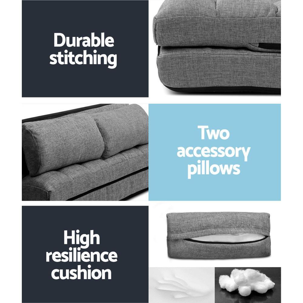 Made of heavy-duty steel and upholstered in a skin-soft faux linen fabric, the lounge sofa bed is generously padded with a high resilience foam that is durable and lasting. Not least, the lounge sofa bed can be separated into four pieces for easy storage. The zipped covers are also removal for hassle-free cleaning.