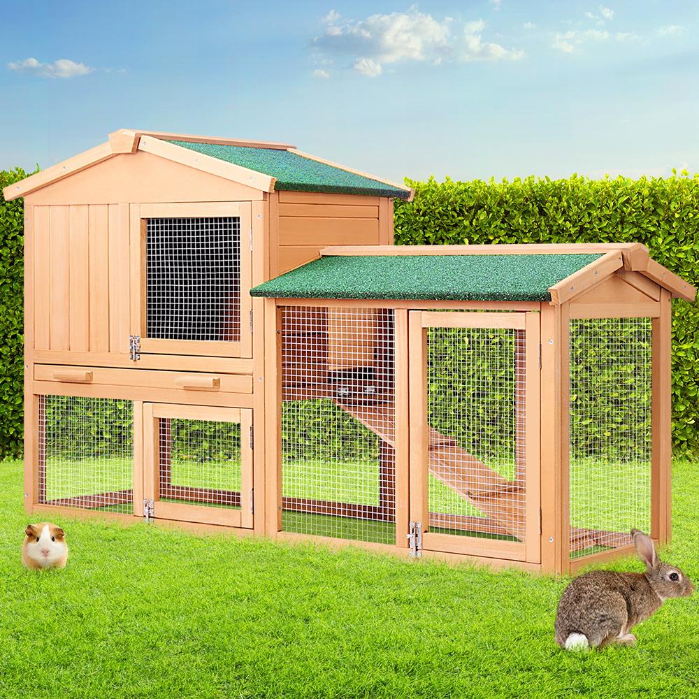 Featuring a fir wood construction, our cosy i.Pet Pet Hutch is the perfect home for your little pets. It incorporates two living areas – one cosy bedroom on the upper level and a spacious play area on the ground level. The three doors provide easy access and cleaning to the living areas and are equipped with strong and firm security locks. The hutch is waterproof, anti-termite and is made of TUV-approved eco-friendly materials. Moreover, it features a green asphalt roof to insulate your pets from the heat during summer and against the rain in winter, providing maximum comfort to your pets all year round. Our pet hutch not only provides a five-star living environment, the architectural design also makes cleaning and feeding easier for you. So seek no further, think i.Pet Pet Hutches when looking for the ideal home for your pets!