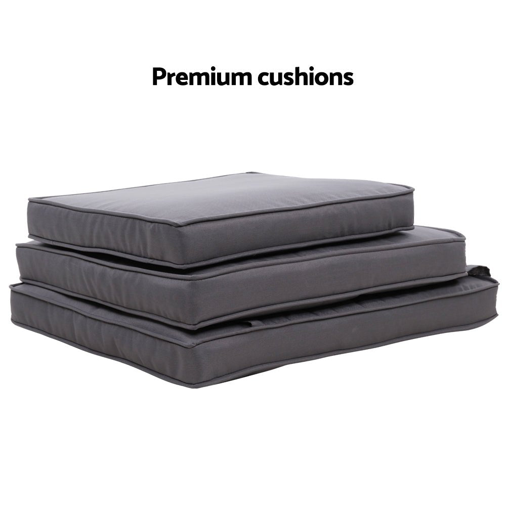 The set is made of UV-resistant and weatherproof PE wicker so that you never have to worry about rust, corrosion or weathering issues. The heavy-duty steel frame, also wrapped in wicker, is sturdy and hardy and will stand up to robust use easily. More importantly, the recliner has five inclination settings, from 110° to 160°, to suit your angle of rest.