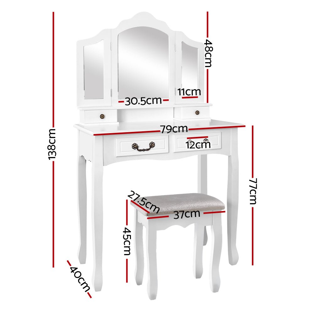 Dressing table dimensions: 79cm x 40cm x 138cm