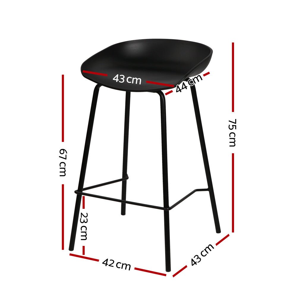 Set of 2 Bar Stools with PP Plastic Seat Black