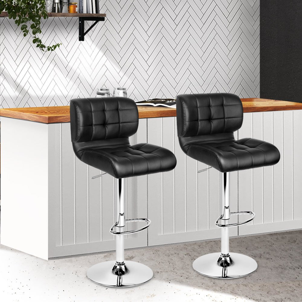 Set of 2 PU Leather Bar Stools - Black