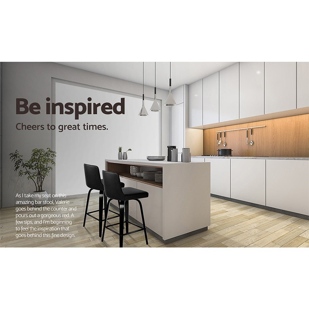 Meticulously crafted using solid plywood with a stunning black finish for the frame, these bar stools feature a generous 6cm thick faux leather seat that swivels 360 degrees, and a padded backrest that makes the person sitting perch in total comfort.