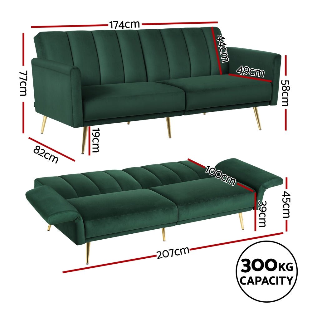Sofa Bed 3 Seater Couch Convertible Lounge Adjustable Arm Recliner Velvet