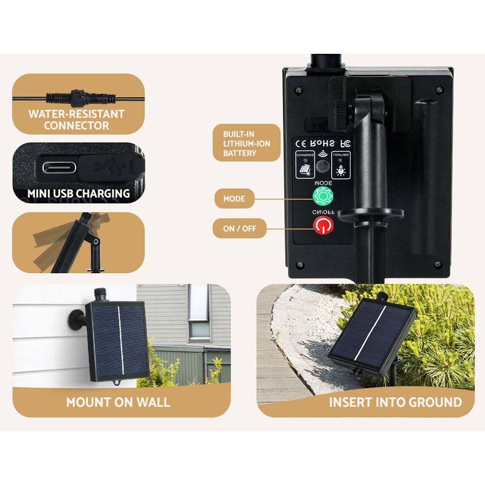 It’s ideal for both indoor and outdoor use. Style it in a cosy corner in your living room or on your porch. Our Christmas tree is 150cm tall and has 304 LED bulbs. It’s solar-powered and has a 5V 120MA solar panel, ensuring up to 2000 hours of operation. The Christmas tree features vibrant LED white lights that will illuminate your home and add a warm and festive glow.