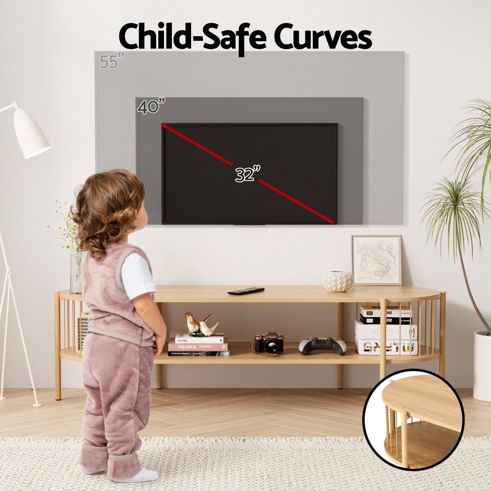 Crafted with sturdy construction using reinforced particleboard and rope-profile metal bars, this TV unit delivers high weight capacity (supports 60kg+) for large screens. Features a storage open shelf for media devices, radiused safety edges for child-friendly homes, and floor-saving foot pads to protect floors. Easy assembly (under 30 mins) with no tools required. Wipe-clean surfaces and scratch-resistant finishes ensure easy to clean and maintain—ideal for busy Aussie households. Compact yet spacious, its minimalist design suits coastal or urban lounges. Your perfect blend of durability, safety & smart storage.