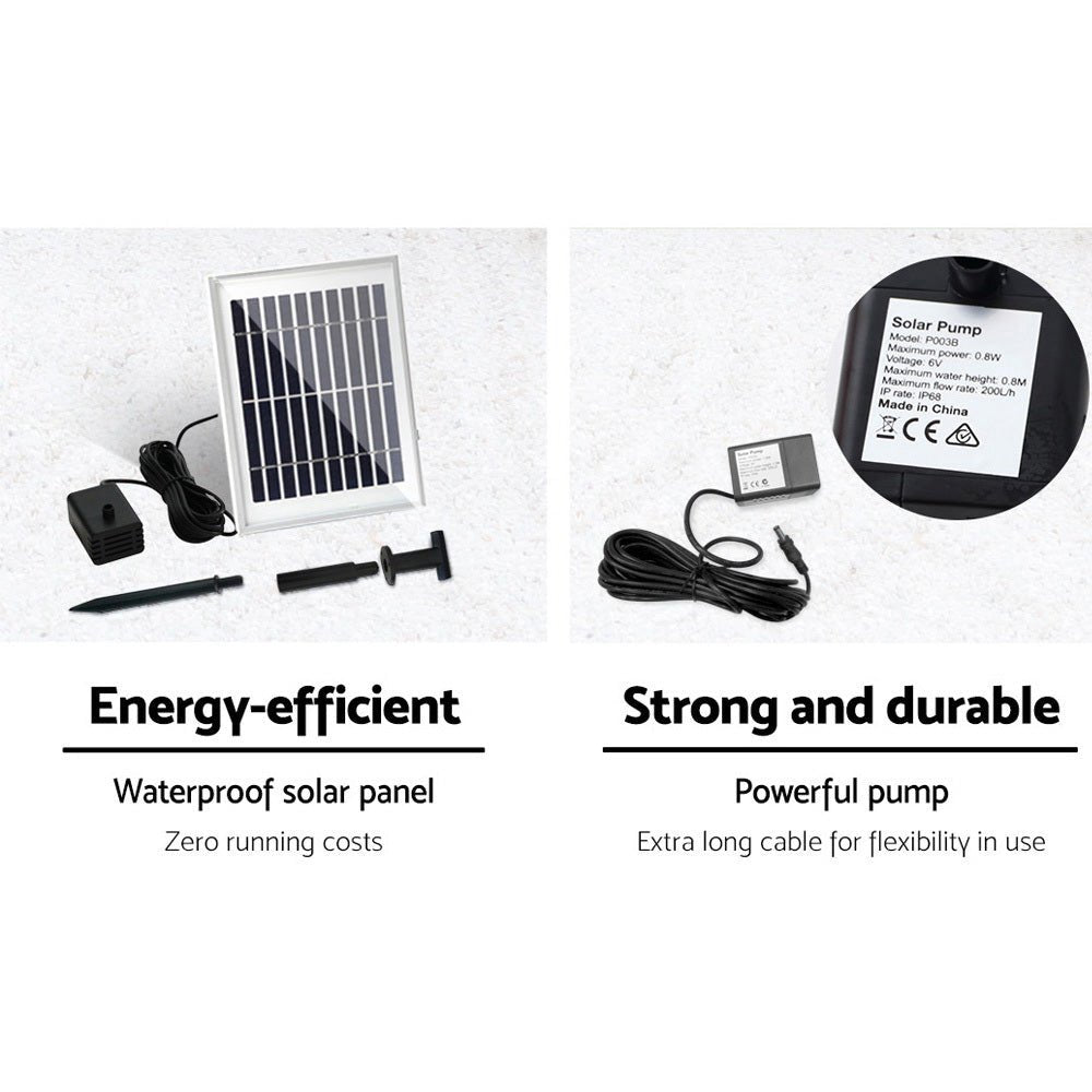 Powered entirely by solar energy with a 3W polycrystalline panel, the fountain does its role ever so efficiently with the rechargeable lithium battery. Not least, the fountain comes with all the necessary accessories to help you set it up effortlessly and get it flowing in no time at all.