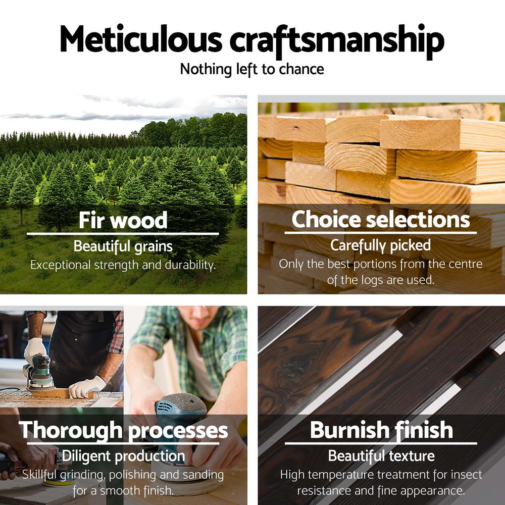 From its period styling to its rustic imported Canadian Fir wood design, the Wagon Wheels Bench is solidly built to seat two persons comfortably. The attention to detail is excellent with finely crafted wagon-wheel armrests, a smooth and supportive backrest and exceptional strength and beautiful grains from the Firwood finish. In fact, the Bench can take on a massive weight of up to 220kg. Better still, the Firwood is weather-resistant, UV-resistant and blessed with a natural resistance to rot and pests. Everything you want in a durable and long-lasting garden bench under the great Australian sun and rain.